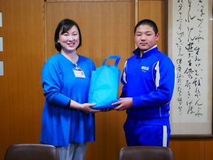 贈呈式では、6年生の代表から、本会の職員に寄付金が渡されました。